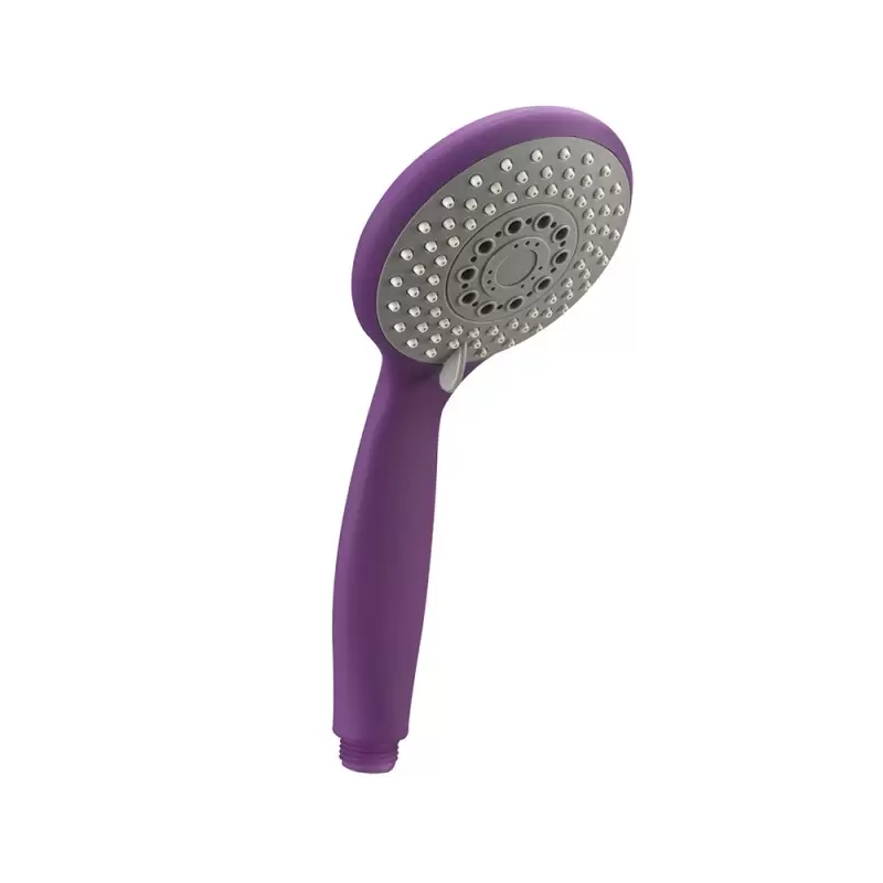 Duș de mână din seria Rio în mov cu 3 funcții; articolul este ușor de curățat datorită duzelor anticalcar