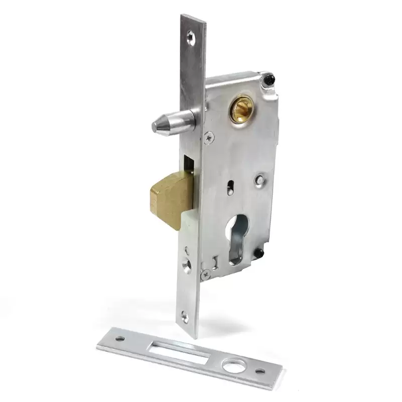 Incuietoare pentru poarta culisanta 60mm. Setul este format din 2 componente: broasca si placuta toc.