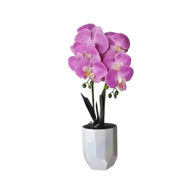 Orhideea artificiala in ghiveci ceramic aceasta este o orhidee frumoasa si realista, creata cu atentie la detalii pentru a arata ca o floare naturala. Ghiveciul ceramic in care este plasata adauga o nota eleganta si finisajul sau de inalta calitate il face potrivit pentru orice decor. Aceasta orhidee artificiala nu necesita intretinere si poate fi plasata in orice colt al casei sau biroului pentru a aduce o nota de prospetime si farmec.